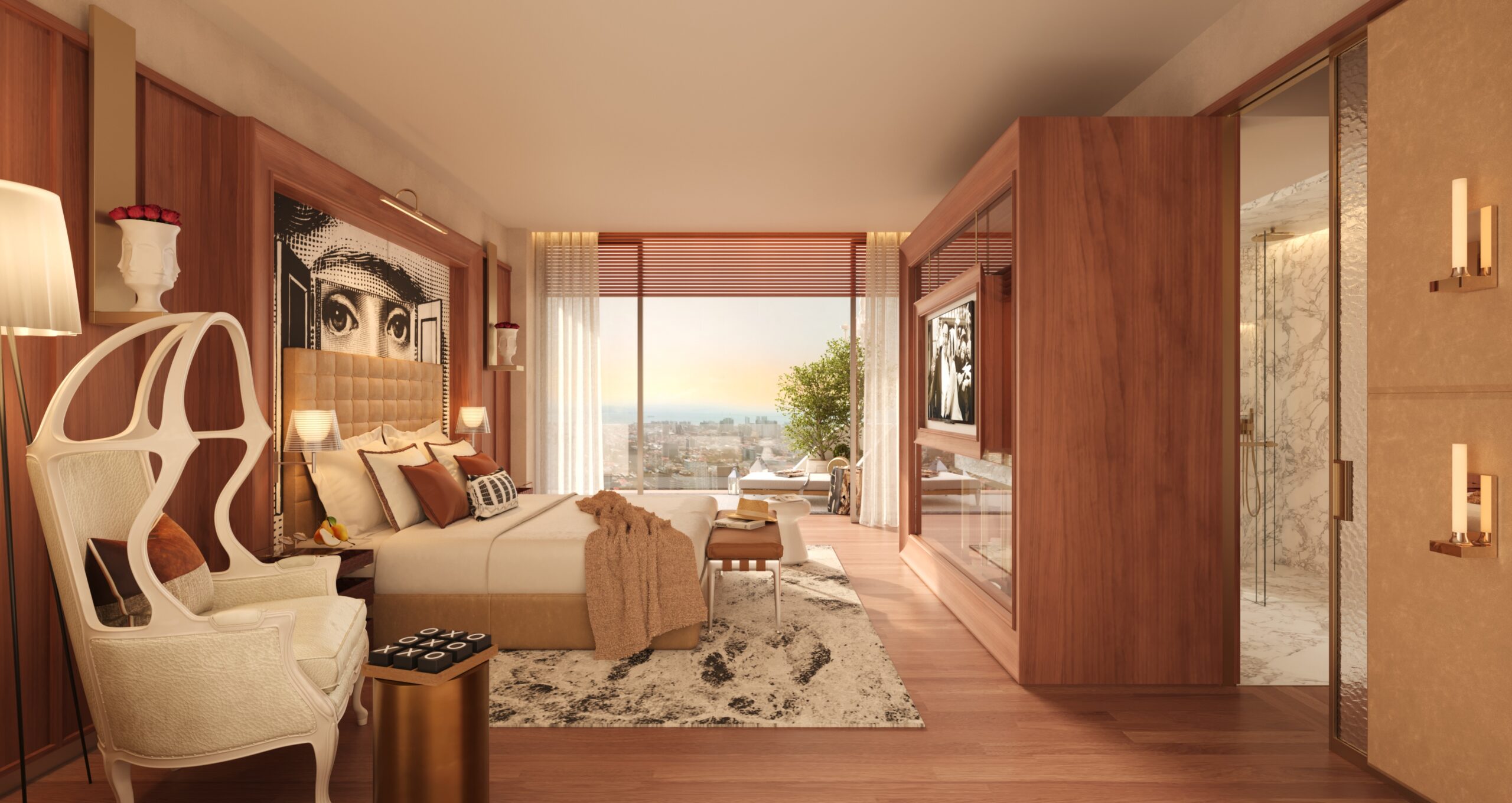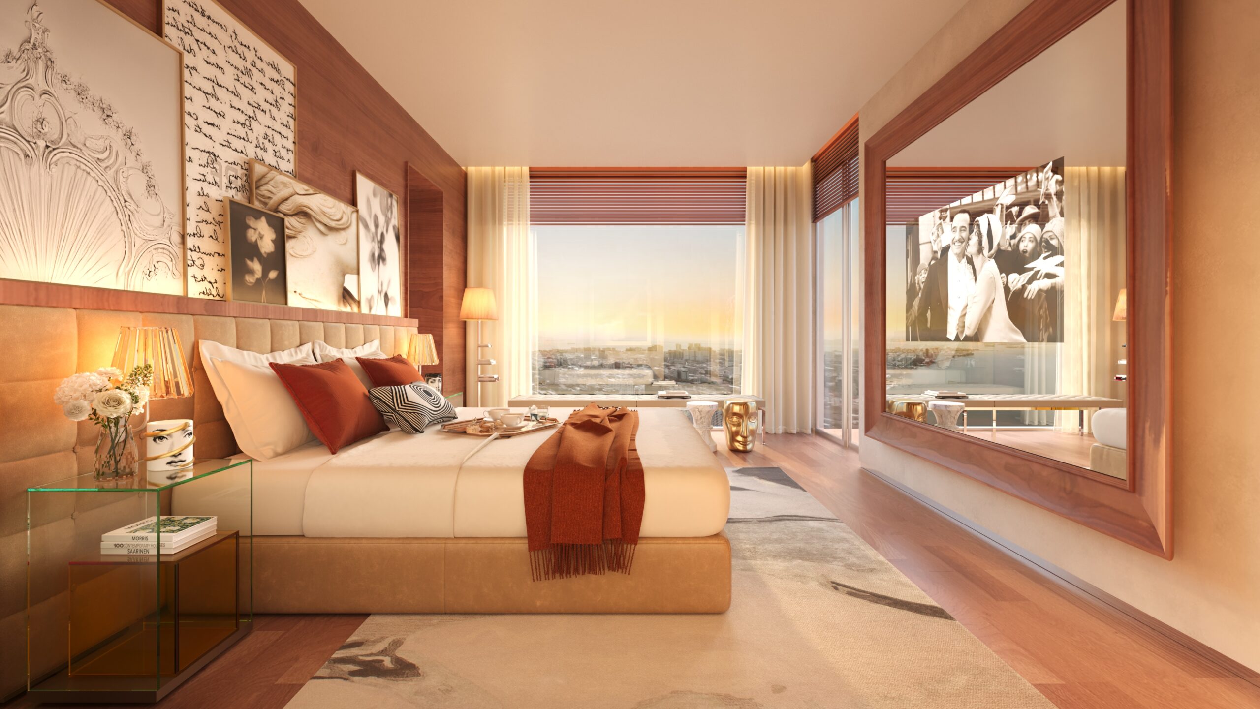The design philosophy integrates international aesthetics with functional living, ensuring continuity between architecture and interiors.